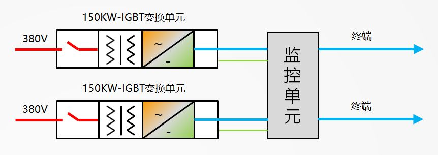 1)IGBT充電模塊(采用IGBT器件為基礎功率變換單元),額定輸出功率為2*150KW,輸出電壓范圍480-750伏。